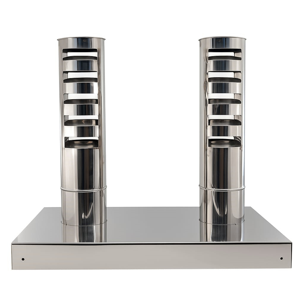 Diseño de ranuras dispuestas para que el aire no perjudique la salida de gases. Tapa superior desmontable para limpieza e inspección del tubo.